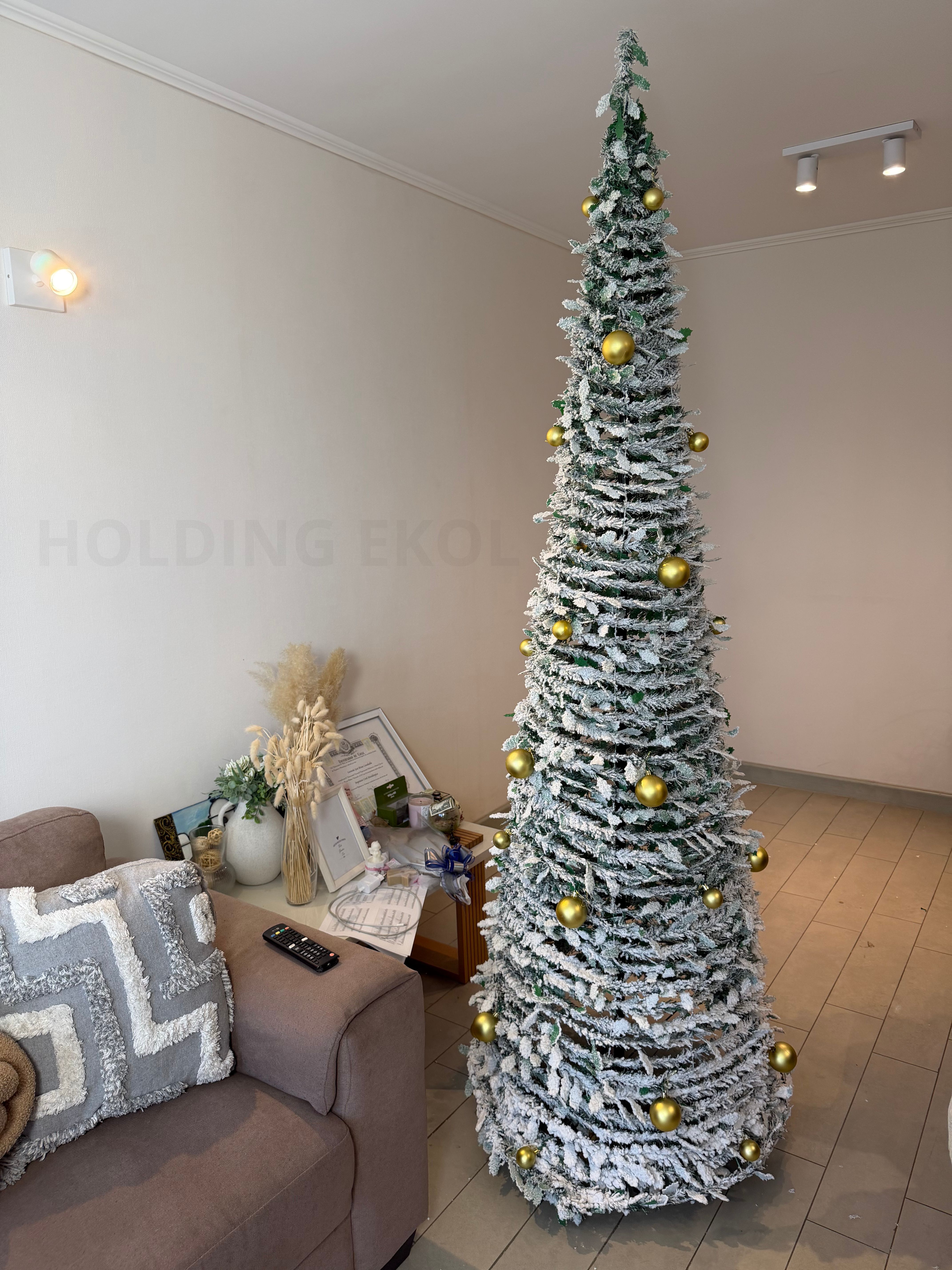 🎄 Árbol De Pascua Ekol Premium 2.10 M | Pino De Navidad Nevado Plegable Con Adornos Dorados ✨