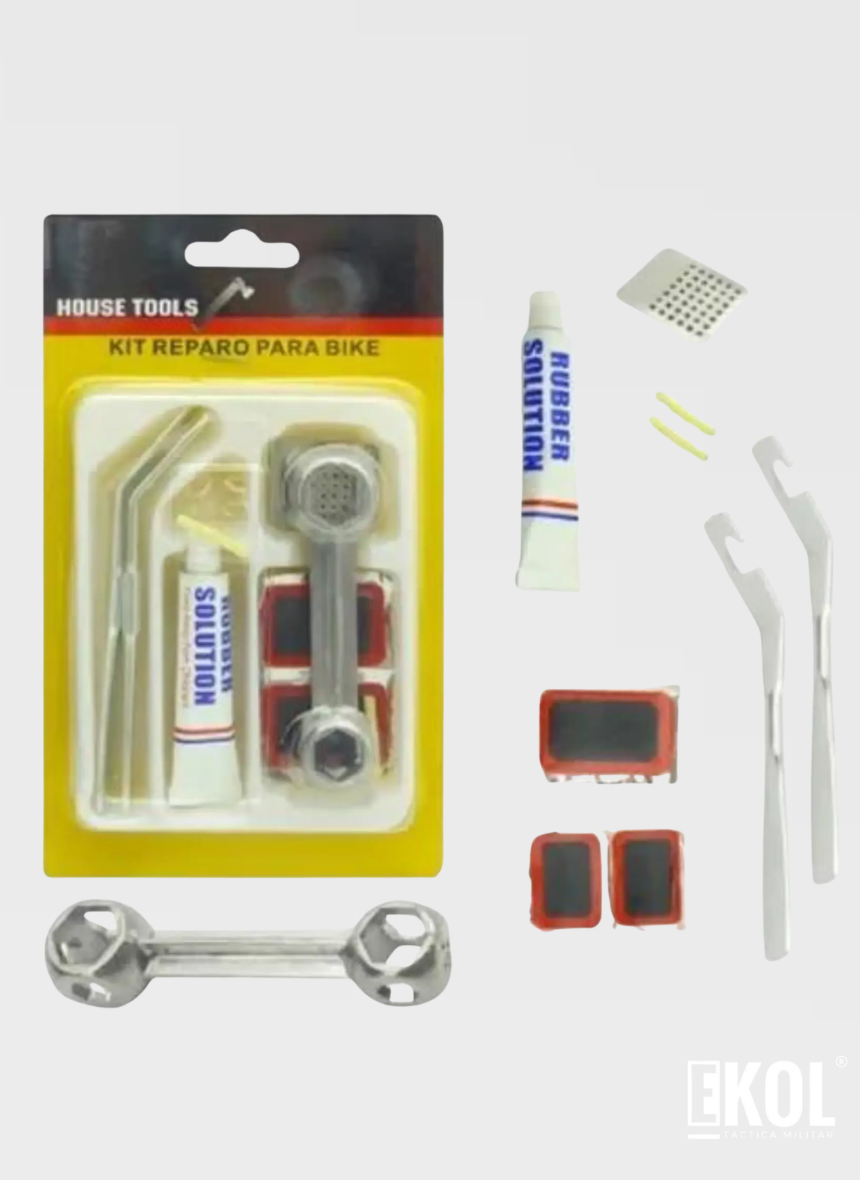 La primera imagen es referencial y fue generada mediante inteligencia artificial.No permitas que un pinchazo detenga tu camino! El Kit de Reparación House Tools es el aliado indispensable para todo ciclista. Diseñado para ser compacto, ligero y extremadamente funcional, este kit contiene todo lo necesario para solucionar emergencias mecánicas básicas y pinchazos de forma rápida y eficiente.