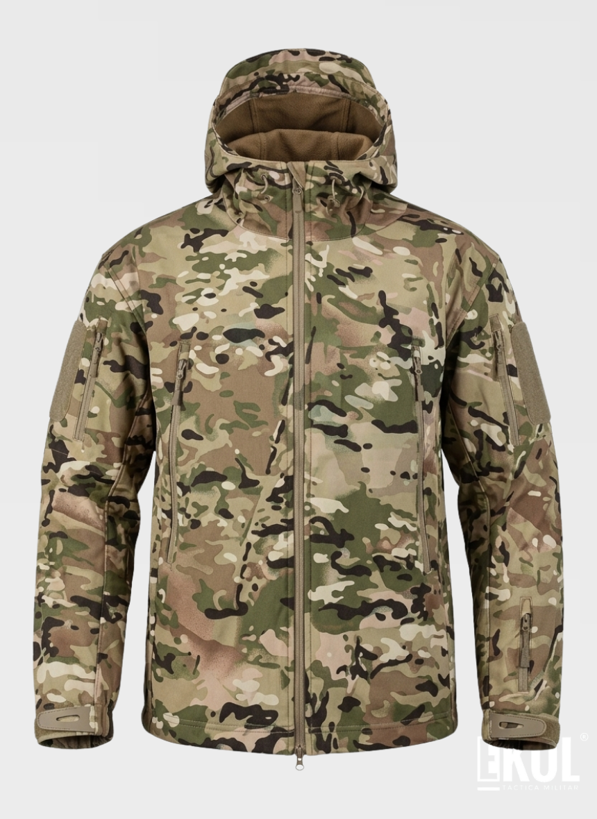 Chaqueta Softshell Tactica Militar Capucha Camuflaje- Impermeable