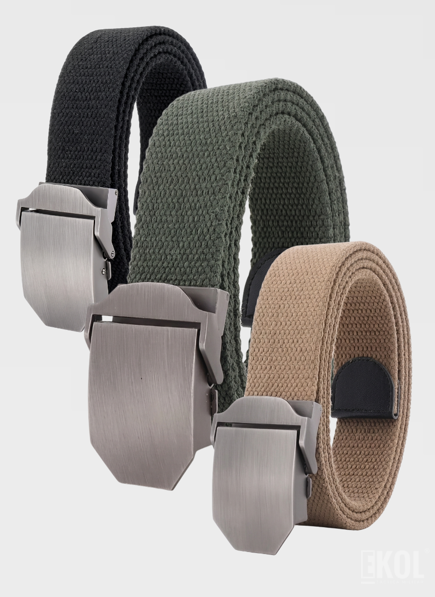 La primera imagen es referencial y fue generada mediante inteligencia artificial. El Cinturón Army de Nylon Ecológico combina resistencia, funcionalidad y sostenibilidad en un diseño moderno y práctico. Fabricado con materiales de alta calidad, es ideal para quienes buscan un accesorio versátil y confiable para el día a día.
