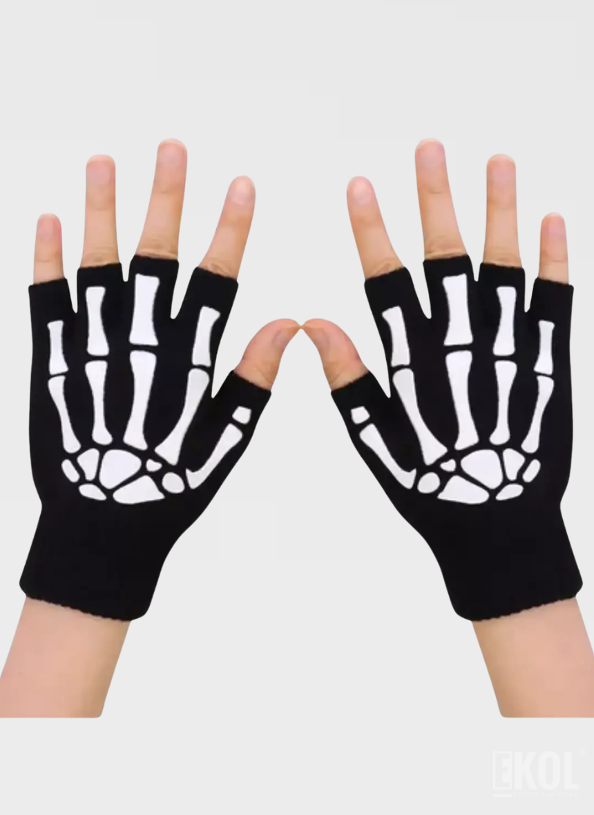 Guantes de Lana Medio Dedo con Diseño de Calavera – Estilo y Comodidad en un Solo Accesorio