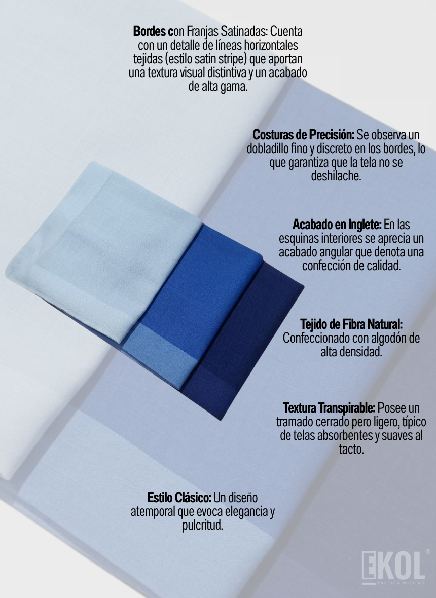 Fabricados íntegramente en algodón de alta calidad, estos pañuelos ofrecen una textura ultrasuave y una capacidad de absorción superior, siendo ideales tanto para el uso personal como para complementar un outfit formal.
