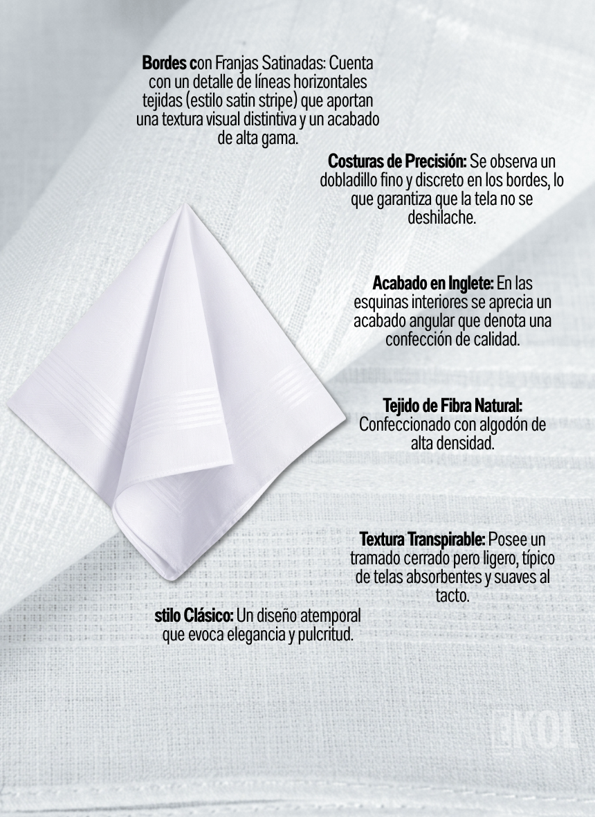 Este paquete de 12 pañuelos es una opción elegante y funcional para cualquier ocasión. Su diseño en blanco puro permite personalización o uso clásico, brindando un toque de distinción y utilidad.
