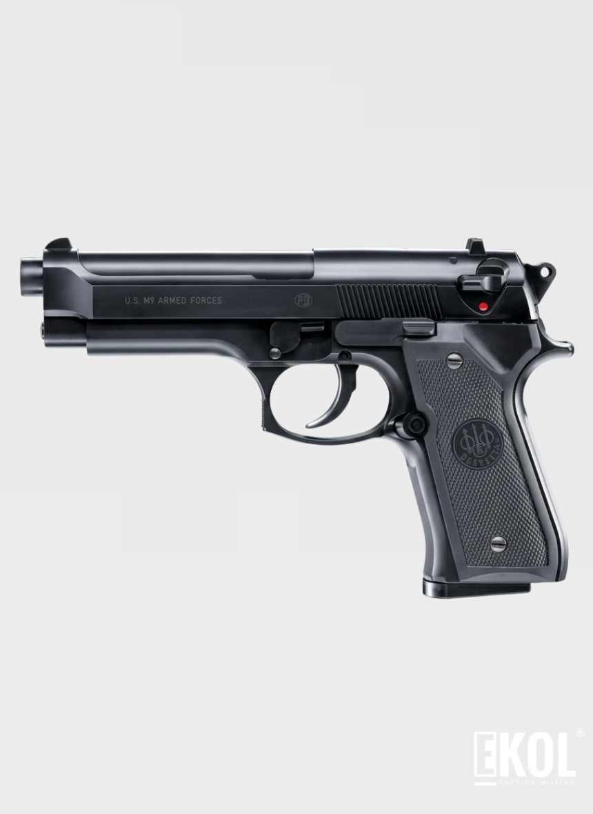 Réplica oficial de la icónica Beretta M9, con mecanismo de muelle fiable y diseño elegante. Ideal para entrenamiento, coleccionismo y partidas recreativas.