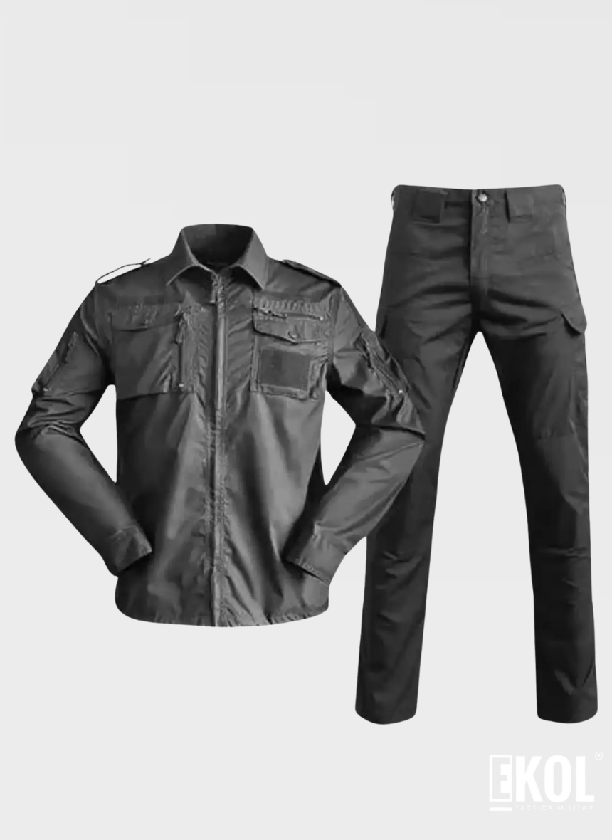 Pantalón: Corte recto tipo cargo con múltiples bolsillos estratégicos para llevar equipo esencial (celular, cargadores, herramientas) sin limitar el movimiento.